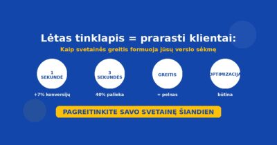 Įsivaizduokite šią situaciją: potencialus klientas ieško jūsų paslaugų telefone, suranda jūsų svetainę Google paieškoje, paspaudžia nuorodą ir… po 3 sekundžių
